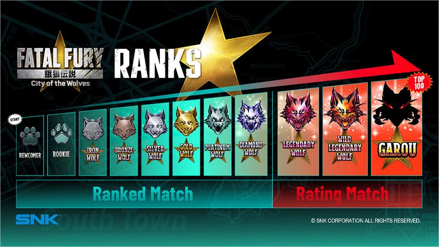 排位赛共有12个段位,从“钢铁之狼”到“钻石之狼”,每个段位又分为★到★★★★★的不同星级。