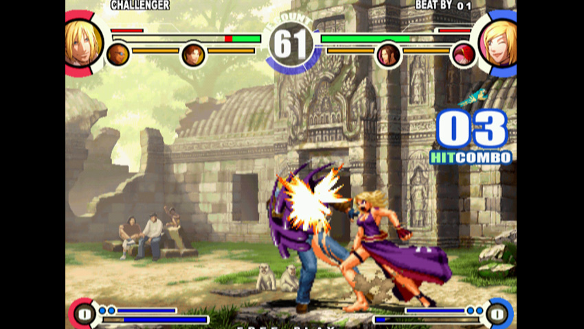 拳皇系列第11弾,阿修篇第二章。游戏搭载了5种充满战略性的全新系统,“快速交换”可以取消攻击过程切换角色、“救援交换”可以在受创时以无敌状态切换角色、“梦幻取消”可以在超必杀技时取消发出队长超必杀技、“技术槽”提供各种切换和取消的技术点、“裁判指示器”带来了有别于剩余体力的新胜负评价标准。画面表现的大幅更新、新角色、究极进化后的战斗系统等多项新增要素可供体验。
