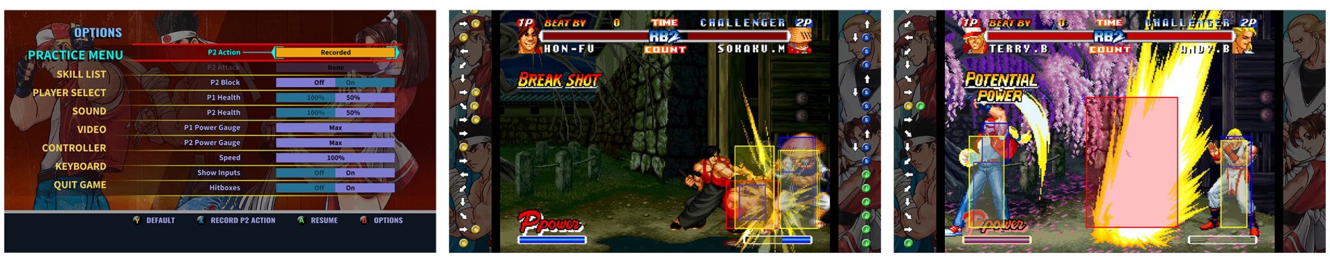练习模式新增速度调整功能、录制功能,以及各角色单独的判定显示功能等多项新内容。在更加易于游玩的《REAL BOUT FATAL FURY 2》中,与全球玩家展开热血对战吧!