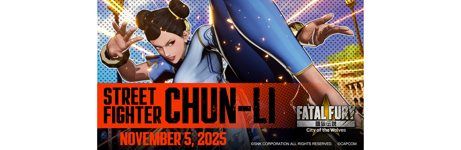 株式会社SNK宣布,好评发售中的新作对战格斗游戏《饿狼传说:群狼之城》中,来自《STREET FIGHTER》的联动角色“春丽”将于2025年11月5日正式上线。