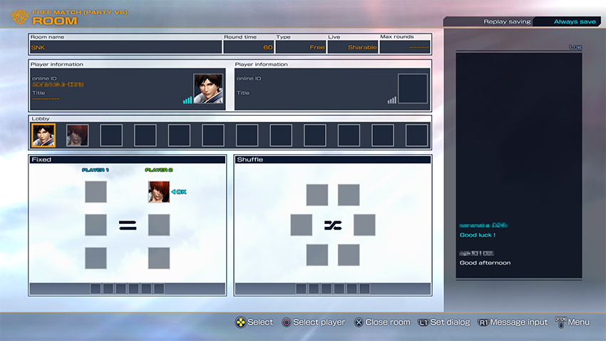 *Wenn du einen freien Raum erstellt hast, kannst du jederzeit die Kampf-Art ändern, indem du den Slot der linken oberen Versus-Plattform auswählst.