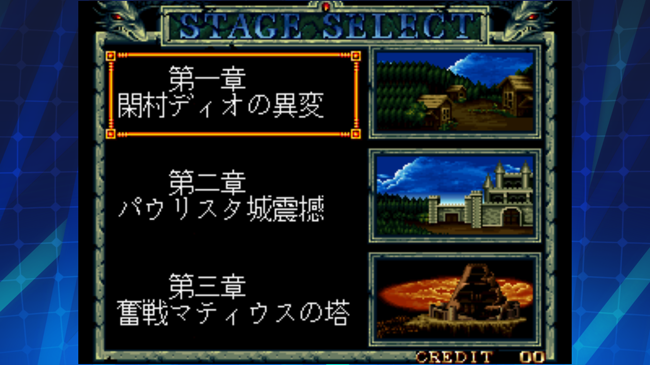 「クロスソード」は1991年にSNKから発売されたアクションゲームです。魔人ナウシズを倒すため、武器攻撃や魔法攻撃、防御などを駆使して全7ステージを戦い抜きましょう。3D視点のゲーム画面で、2人同時プレイも可能です。獲得したGOLDで武器を購入したり、キャラクターが成長するRPG要素も搭載されています。