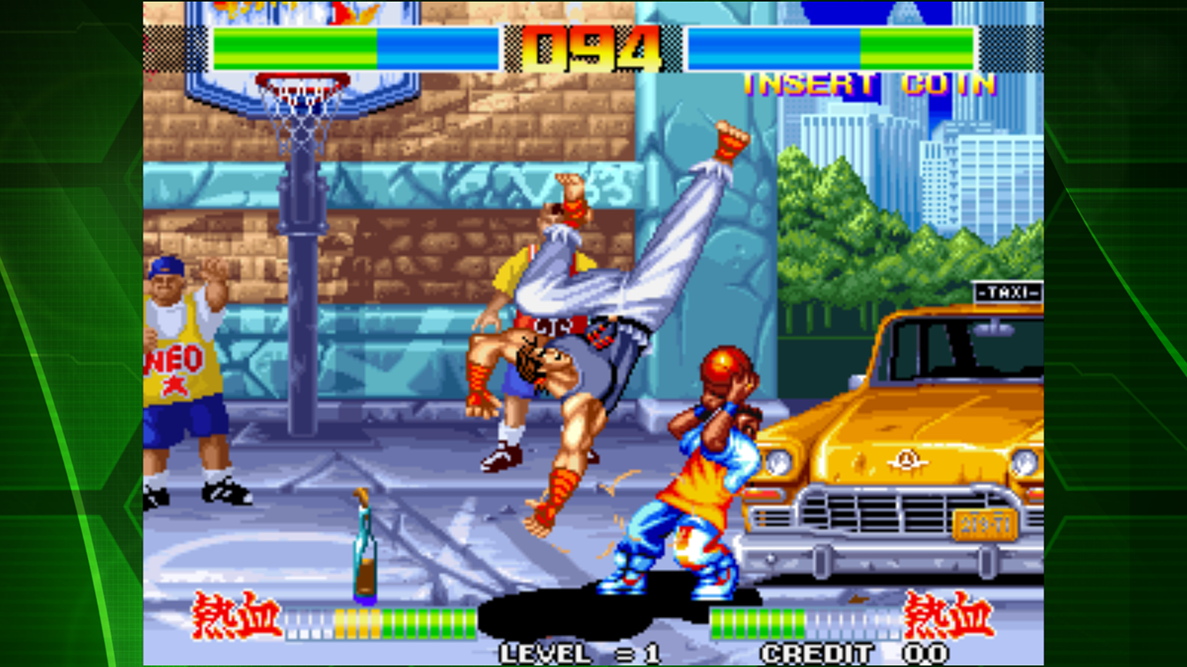 「痛快GANGAN行進曲」は1994年にSNKから発売された格闘ゲームです。熱傑8人から1人を選択して、それぞれの目的のために戦いを勝ち抜きましょう。奥行き、ダッシュに激烈攻撃、痛快バトルに制限なし!技で攻めるか力で押すか!?思いのままに大暴れをガンガン楽しんでください。