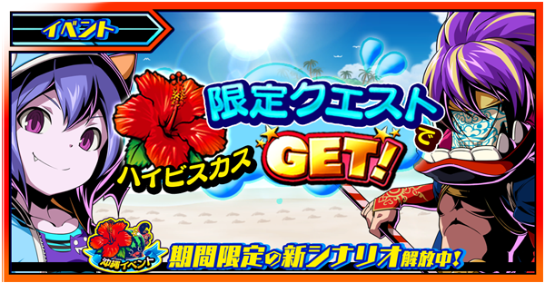 2017年08月30日 イベント 「ハイビスカス」を集めろ!沖縄イベント開催! 【イベント概要】 沖縄ストーリーイベント開催! キミヒロ初の「シナリオ付きイベント」(期間限定)が開催されました! 夏の沖縄県を舞台に「バッ…