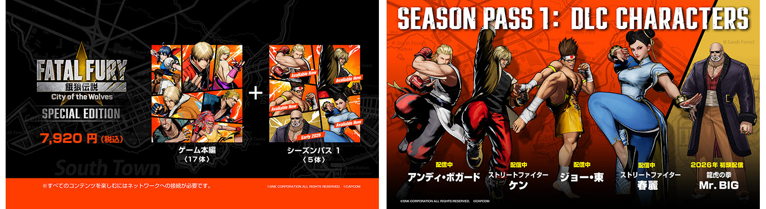 株式会社SNKは、好評発売中の対戦格闘ゲーム『餓狼伝説 City of the Wolves』について、『ストリートファイター』とのコラボキャラクター「春麗」を配信開始したことをお知らせいたします。これにあわせ、ゲーム本編とシーズンパス1がセットになったコンソール版「餓狼伝説 City of the Wolves SPECIAL EDITION」を対象に、60%OFFセールを開催しております。