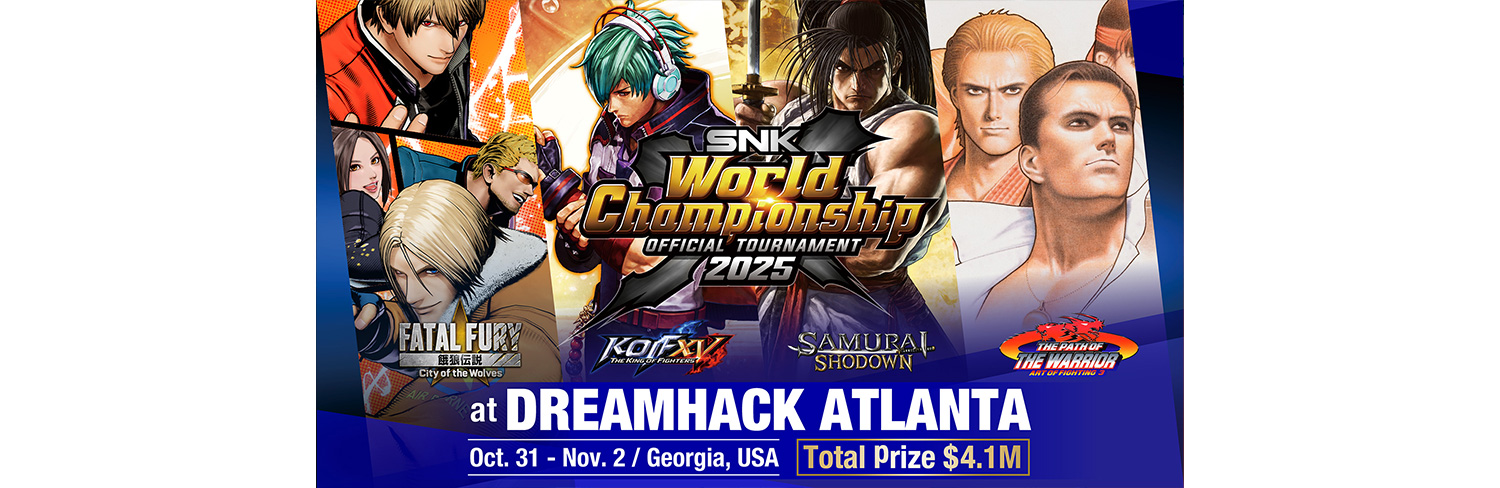 The ultimate esports showdown featuring four iconic SNK fighting games: FATAL FURY: City of the Wolves, THE KING OF FIGHTERS XV, SAMURAI SHODOWN, and ART OF FIGHTING 3. Taking place from October 31 to November 2 at DreamHack Atlanta in Atlanta, USA, top players from regional qualifiers and the Last Chance Qualifiers (LCQ) at SWC 2025 will compete for the title of the world’s best fighter. With a total prize pool exceeding $4,100,000, this will be an SNK event for the history books.
