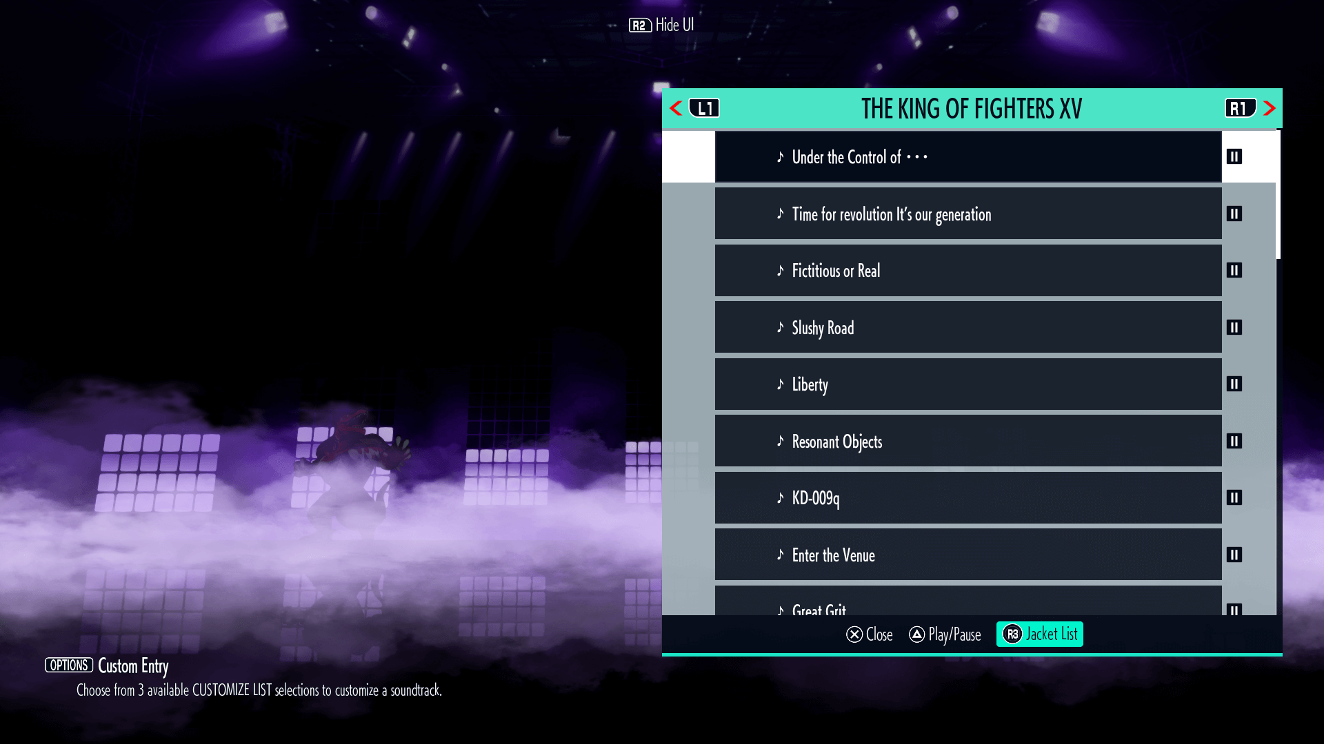 Famous songs from previous games in the KOF series are initially locked, as is music not yet heard in this game.
