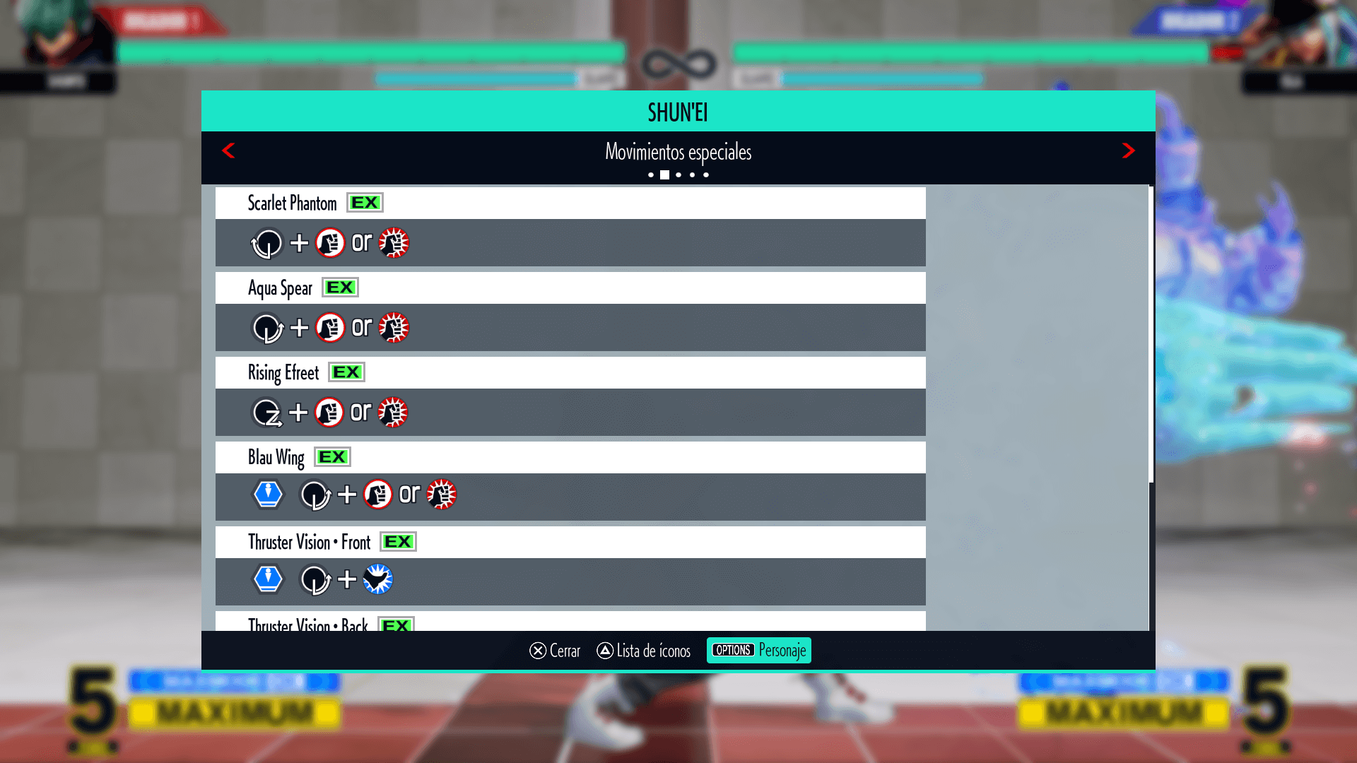 Estos son los íconos que aparecen en el juego. Aparecen en el modo de entrenamiento y en la lista de comandos.