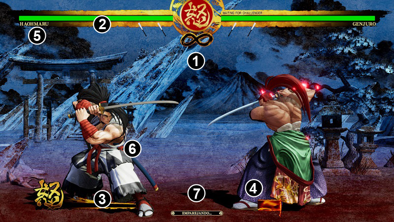 Muestra la vida que le queda a cada personaje durante la partida. Cuando el contador de uno de los dos personajes llegue a 0, este perderá la ronda.