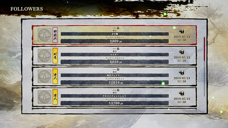 試合での戦歴、フォロー、フォロワーを確認する事ができます。