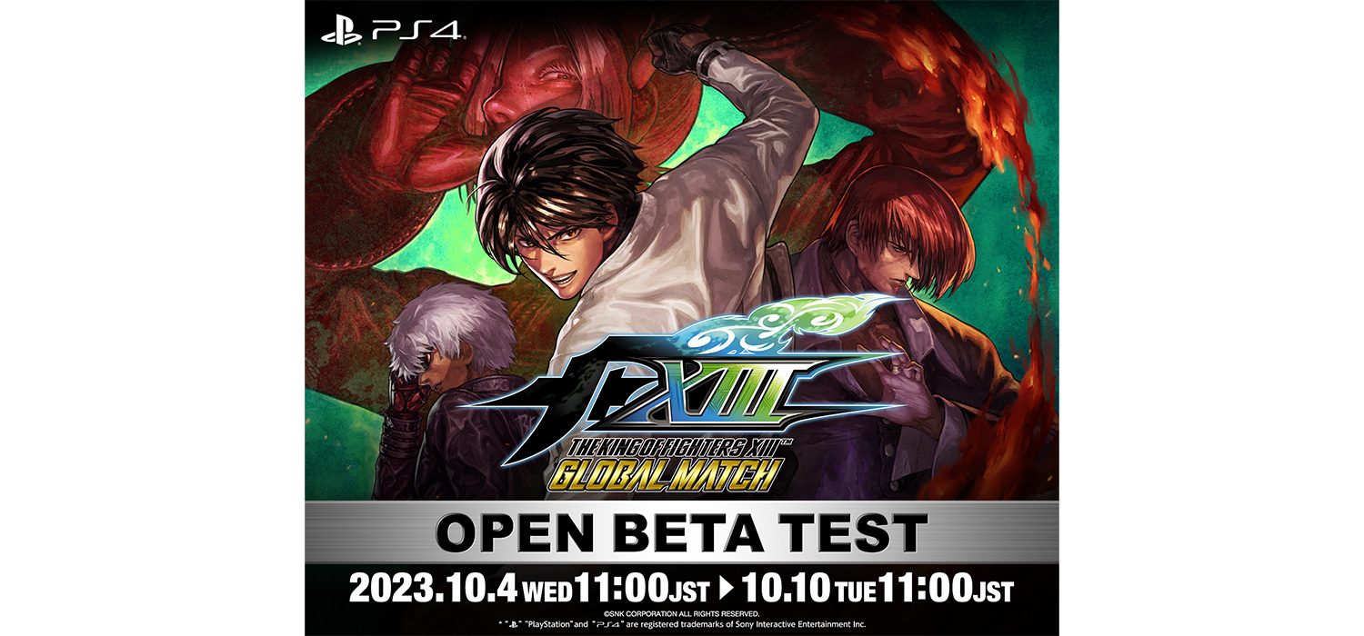 株式会社 SNK (本社:大阪府大阪市、代表取締役社長 CEO:松原 健二)宣布,面向 PlayStation®4/Nintendo Switch™ 開發中2023年11月16日(週四)發售的對戰格鬥遊戲『THE KING OF FIGHTERS XIII GLOBAL MATCH(KOF XIII GM)』,將於日本當地時間10月4日(週三)11點至10月10日(週二)11點的期間,在 PlayStation®4 平台上實施以提高線上功能品質為目的的第3次β版公開測試。