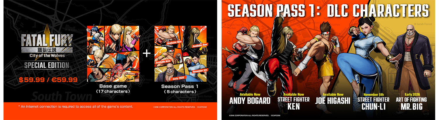 收錄《STREET FIGHTER》系列「肯」、「春麗」等角色的 SEASON PASS 1 套裝——《餓狼傳說 City of the Wolves》SPECIAL EDITION 現正好評熱賣中!
