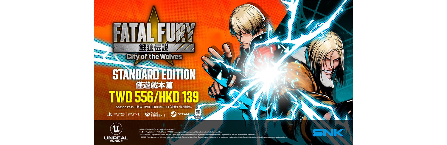 《餓狼傳說 City of the Wolves Standard Edition》以TWD 556/HKD 139的新價格登場!